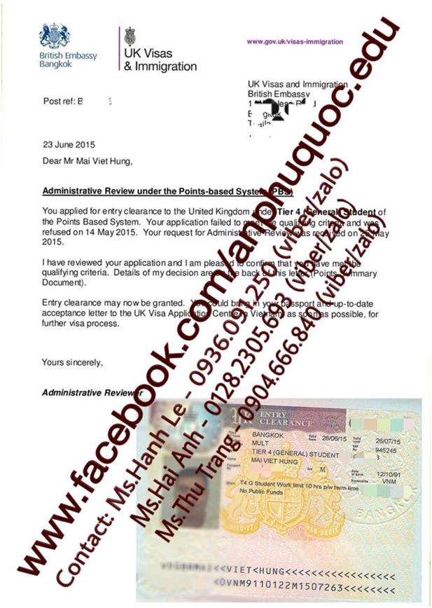 Bạn Mai Viết Hưng nộp đơn xin visa du học chương trình Tiếng Anh tại Anh Quốc và không may bị đại sứ quán Anh từ chối.