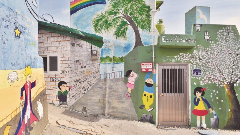 Làng tranh Jaman nằm trên ngọn đồi cao thành phố Jeonju – cách Seoul 50km về phía nam. Làng Jaman ở Jeonju thường được gọi với cái tên “ngôi làng ánh trăng” vì thu hút rất nhiều khách đến tham quan du lịch mỗi năm. Các tác phẩm ở đây đều được nhiều khách du lịch quan tâm, đặc biệt là những người yêu nghệ thuật. Đến đây, du khách có thể dạo bước dọc các khu phố và ngồi thưởng thức cà phê. Với những ai yêu thích hội họa thì đây là địa điểm không thể bỏ qua. Làng Jaman là một trong những nơi khởi điểmcho phong trài vẽ bích họa trên tường. Những bức họa của làng cực sắc nét và đầy tính nghệ thuật, vì thế người xem không hề phản cảm với việc tường bị phủ đầy hình vẽ. Ngoài ra, làng trang Jaman không quá xa phố cổ Jeonju nên sau khi ngắm tranh và chụp ảnh chán chê, bạn có thể ghé qua nghỉ ở làng.