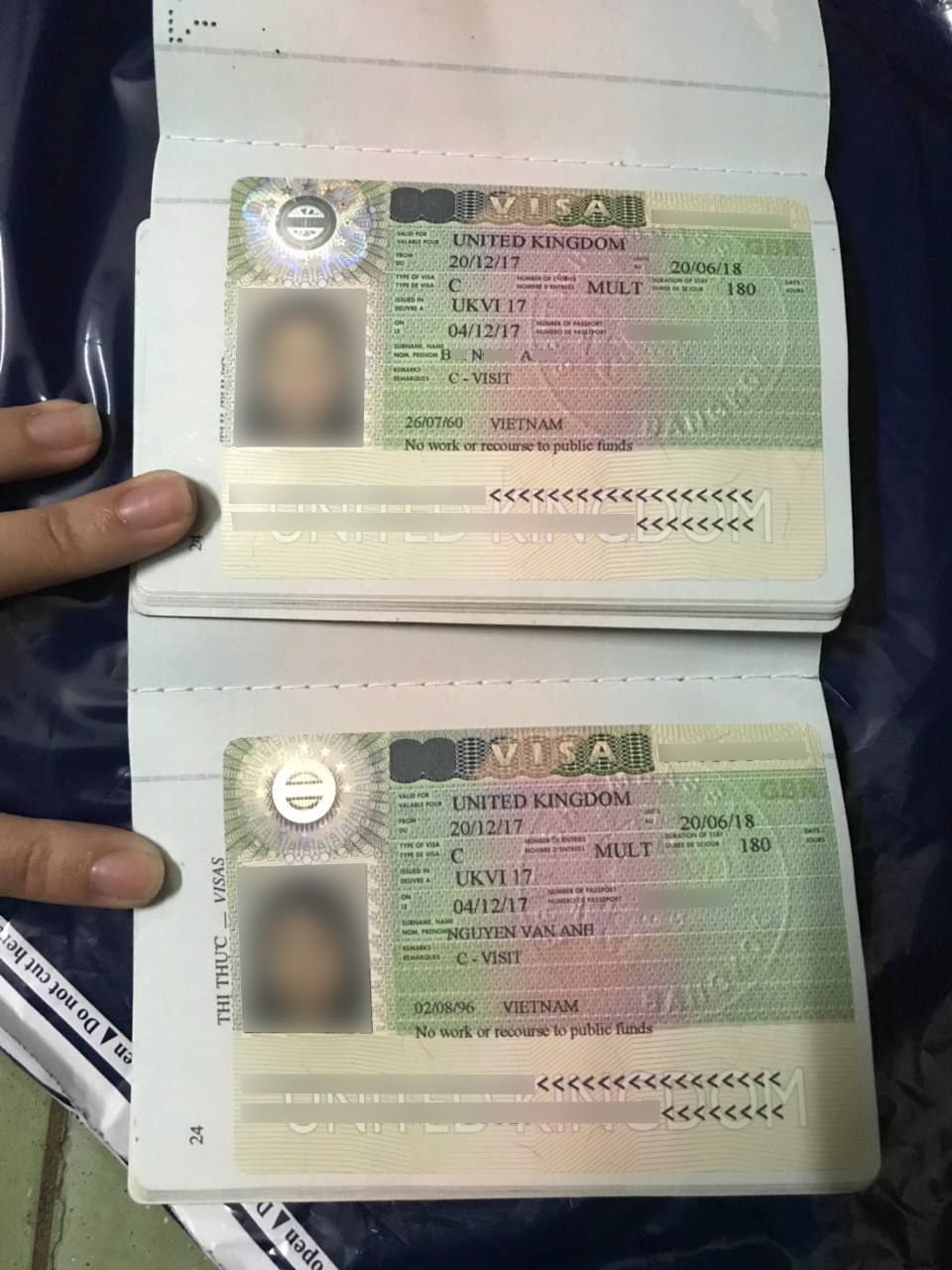 Hai tấm visa thăm thân Anh quốc của mẹ con cô Ánh và em V.Anh