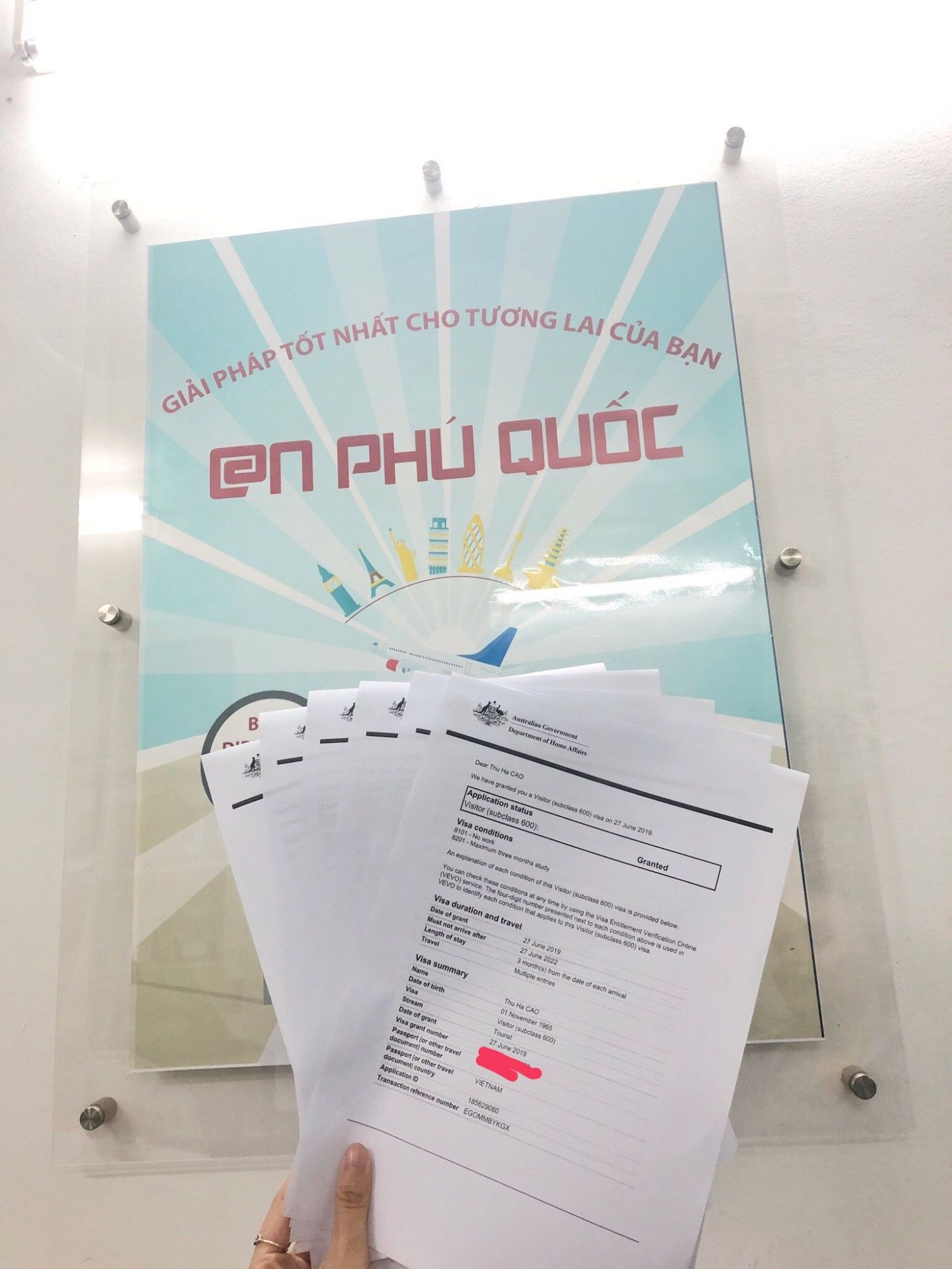 Biết đến uy tín của An Phú Quốc trong lĩnh vực xin visa du lịch các Úc, anh chị đã tin tưởng và giao cho công ty “trọng trách” quan trong nhất trong chuyến du lịch của gia đình mình. Ngay khi nhận được "nhiệm vụ", đội ngũ tư vấn viên An Phú Quốc đã bắt tay ngay vào việc thu thập, chuẩn bị hồ sơ. Và chỉ sau hơn 1 tuần 6 tấm visa Úc đã đến tay đại gia đình anh chị. Nhìn những tấm hình tuyệt đẹp mà anh chị chia sẻ An Phú Quốc cảm thấy rất vui và tự hào với những gì có thể đem đến cho Khách hàng.