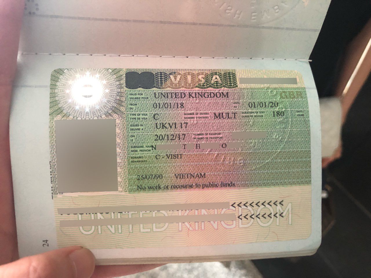 Tấm visa du lịch Anh quốc thời hạn 2 năm của em Oanh